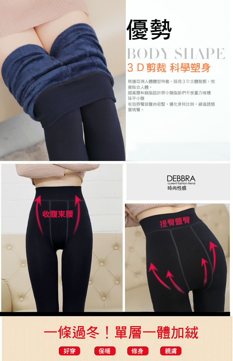 更多【Desir】3D剪裁加大加絨高腰珍珠絨顯瘦彈性打底褲(3雙)介紹:
